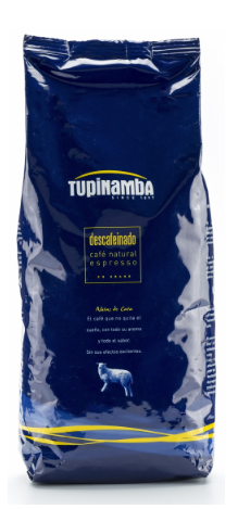 Café natural sin cafeína, a base de arábigas y un ligero porcentaje de robusta. El Café Descafeinado Espresso Tupinamba es una selecta mezcla de cafés Arábicas y Robustas,descafeinados por proceso natural a través de agua, eliminando el 99.9% de cafeína. Con el Descafeinado Espresso Tupinamba no hay por qué renunciar al placer de un auténtico espresso, con todo el aroma, crema, sabor y sin cafeína.