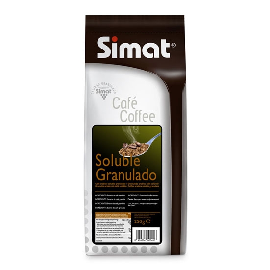 REF. 0085 DESCRIPCIÓN DEL PRODUCTO Café Soluble. Este producto está elaborado con el proceso tradicional de atomización a base de cafés arábicos de tres orígenes: Brasil, Colombia y Kenia. La combinación le otorga un sabor suave (Brasil), aromático (Colombia) y cremoso (Kenia) en su justa medida. DOSIS RECOMENDADA 1,1-1,5 g./100 ml. SERVICIOS POR KG. APROX. 909. PACKAGING Ud: 0,250 kg | Ud./caja: 10 | Kg./caja: 2,5 | Kg./Palet: 112,5 (nacional) – 202,5 (internacional).