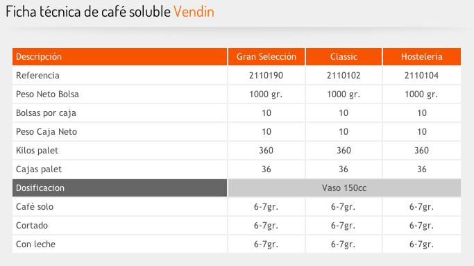 Principales características de nuestros Cafés Solubles El café soluble se ha ido estableciendo progresivamente en el mercado, de tal manera que hoy en día es impensable no tenerlos en cuenta dentro de una maquina automática. Esta exitosa tendencia obedece a varios factores: excelente aroma y sabor, buena conservación y principalmente a su facilidad de preparación. Nuestros cafés solubles han sido seleccionados en su procedencia y elaborados con un avanzado proceso tecnológico otorgando al producto final una calidad superior. Ventajas del producto Procedente de los mejores orígenes procesado con la mejor tecnología Europea. Calidad organoléptica y estabilidad de la crema. Sistema especial de procesado diseñado para la distribución automática, evitando los problemas de humedad y malas disoluciones.