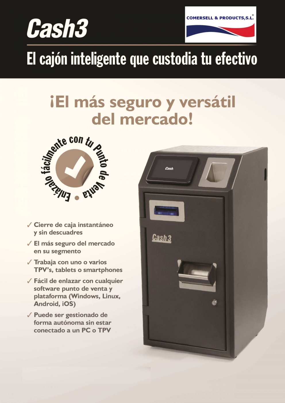 CARACTERÍSTICAS: Sistema antipalanca Sistema de anclaje Pantalla táctil de 7” para guiar al usuario Tolva frontal para la introducción de monedas Acepta, valida y dispensa monedas de 2ct a 2€ Tolva para la carga rápida de monedas Capacidad del reciclador de 1.500 monedas Velocidad validación de 4 monedas/s Velocidad dispensación de 12 monedas/s Capacidad del depósito de 1.500 monedas Acepta, valida y dispensa billetes de 5€ a 500€ Carga y validación de billetes Velocidad validación de 3 s/billete Devolución secuencial de billetes Capacidad del reciclador de 200 billetes Integra 2 recicladores Capacidad del casete de 1.000 billetes Rechaza billetes y monedas falsos CPU integrada Pantalla táctil de 7” Conexión por Ethernet Cierre electrónico con apertura retardada (Opcional) Sistema anti-palanca Sistema de anclaje en mostrador Dimensiones (ancho x alto x fondo) 37 x 73,8 x 39,5 cm Peso de 67 kg Grosor de la chapa de 3 mm