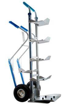 Carretilla Portabotellones 7 botellones está fabricada en aluminio anodizado con mayor refuerzo estructural, resistencia y ligereza, que lo hace perfecto para los distribuidores más exigentes en la distribución de agua de cada día. La Garantía de Calidad HODS se ha esforzado para que esta carretilla cumpla los estándares que nos caracterizan. Por ello, nuestros técnicos han mejorado el modelo incorporando rodamientos FAG alemanes de alta gama. El anodizado del aluminio es un proceso electroquímico que forma una capa protectora de óxido de aluminio sobre la superficie del aluminio base. De este modo, presenta las siguientes propiedades y ventajas: no necesita mantenimiento; aumenta la protección contra la lluvia, el sol y la humedad; aumenta la dureza superficial; proporciona un acabado decorativo; resistencia a la abrasión, al desgaste y a la corrosión. La carretilla portabotellones de 7 botellones lleva un refuerzo estructural adicional en la parte trasera que aporta varias ventajas: ayuda a salvar escaleras reduciendo el impacto de la carretilla al subir o bajar escalones; protecciones antifricción; permite tumbar la carretilla aun estando cargada; aporta mayor estabilidad; incorpora empuñaduras que permiten agarrar la carretilla de forma más ergonómica y con mayor protección en las manos evitando posibles golpes; aumenta la capacidad de carga final. También incorpora ruedas neumáticas con rodamientos reforzados que permiten, por un lado, un mejor deslizamiento y fácil movilidad de la carretilla cargada, y por otro lado, una mayor resistencia aumentando los kilogramos de carga, además de una segunda empuñadura horizontal con un revestimiento de silicona con mayor agarre evitando, por lo tanto, posibles deslizamientos accidentales. Tiene una capacidad de carga de 7 botellones y en cada bandeja se han instalado unos silentblock que reducen las vibraciones del botellón PET evitando las oscilaciones del mismo y los desperfectos en los envases durante el t