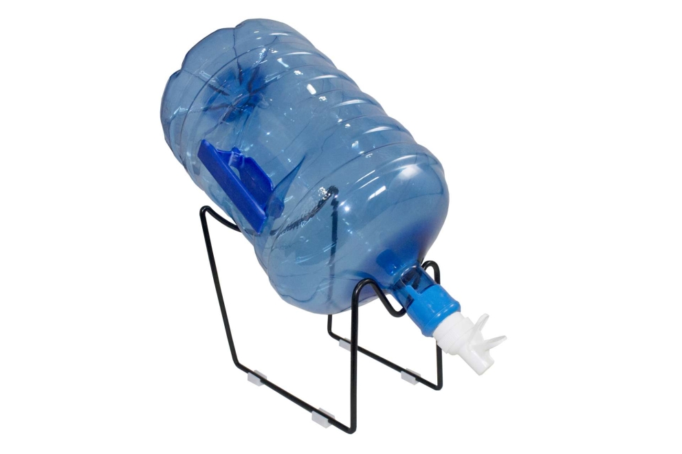 Kit Soporte + Grifo es otra forma, también muy económica, de tener en casa o la oficina un dispensador de agua natural muy simple y eficiente. El Soporte es de hierro con un tratamiento de cromo que evita la corrosión y compatible con cualquiera de nuestros botellones PET en sus diferentes formatos, de 12 litros, de 18,9 litros e incluso de 20 litros. El soporte está disponible en en dos colores y alturas: color plata y en color negro, variando ligeramente su altura. El soporte negro es más alto y el soporte plata tiene una altura inferior. El Grifo de gran caudal es de sencilla instalación y apto para nuestros tapones de 5 galones. Hay tres grifos disponibles. Por una parte, el mismo modelo está disponible en azul o blanco. Además, hay un tercer grifo blanco con rosca para una sujeción más firme. El Kit Soporte + Grifo es ideal para colocarlo siempre en el borde de una mesa o del banco de la cocina, por lo que permite llenar vasos, botellas y jarras sin ningún problema. Además, aumentamos su funcionalidad cuando lo complementamos con nuestro nuevo Apilador de 2 botellones PET. De esta forma, se pueden tener tener dos botellas de repuesto y manteniendo la estética simple del producto.