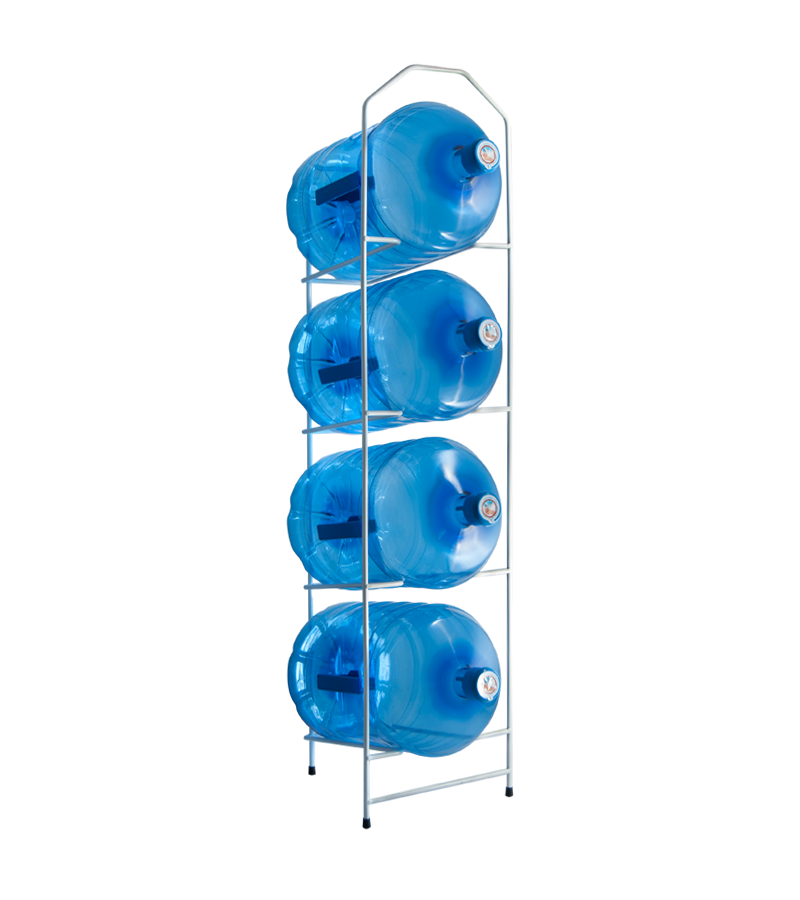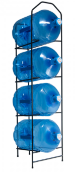 Estanterías metálicas de diseño simple y de gran resistencia con capacidad para almacenar hasta 4 botellones. Permite formatos desde 11 litros a 20 litros. Esta estantería metálica negra tiene cuatro apoyos que aportan mayor estabilidad que cualquier otro botellero del mercado. Además, incorpora tacos de goma de gran resistencia que evitan rayar cualquier tipo de suelo. Tiene capacidad para almacenar 4 botellones. Estos botellones no tienen que ser del mismo tamaño, ya que la estantería metálica acepta formatos desde 11 litros hasta 20 litros. Está disponible en color blanco y negro, lo que permite que combine con cualquiera de nuestros dispensadores. El modelo en negro resulta ideal para colocar al lado de nuestras fuentes de agua de este mismo color, como por ejemplo: Elegance Negra, Elegance One Gris, Fleet y los modelos Up y Down de la línea Evossé O3. Su diseño fino y sencillo ayuda a mantener la estética, sin dejar de lado su funcionalidad. Además, es ligera, pesa tan solo 6 kg, esto permite poder transportarla y cambiarla de sitio si es necesario. Como resultado, obtenemos una estantería para botellones versátil, que permite diferentes formatos de botellón y que, además, mantiene una estética moderna y elegante junto a los dispensadores de agua.