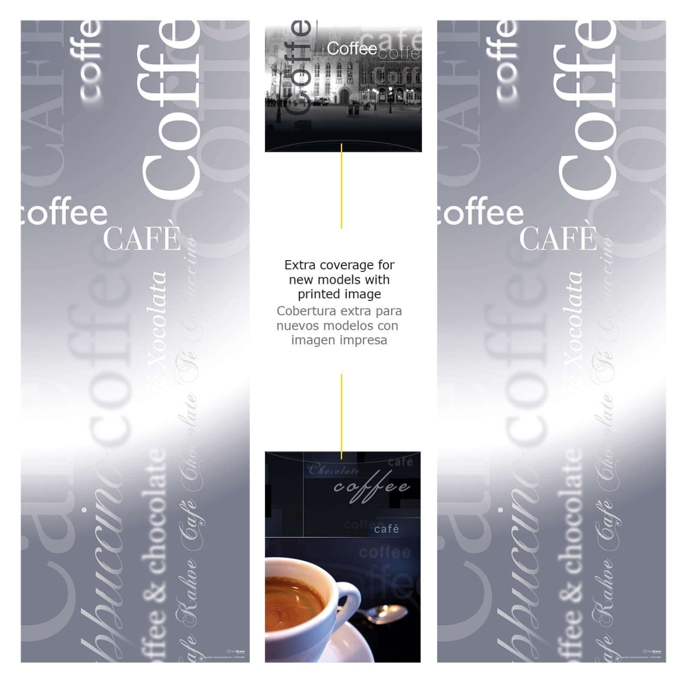 Conjunto de elementos adhesivos para la actualización de a imagen de una máquina de café Kikko. El kit contiene: 1x Parte frontal superior 1x Parte frontal inferior 2x Laterales En función del tipo de instalación que realice, es posible que necesite recortar algunos de los elementos con tijeras por la linea de puntos marcada. Se aplica con un pulverizador de agua y una pizca de jabón, lo que permite posicionar el vinilo en el lugar sin complicaciones. A continuación se debe pasar una espátula por encima del vinilo con el fin de que quede adherido al tiempo que evacuamos el agua del interior.