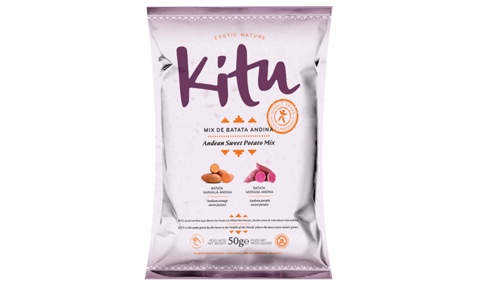 Mezcla de batata naranja y morada, 2 variedades tradicionales andinas de sabor dulce con más de 5.000 años de historia.