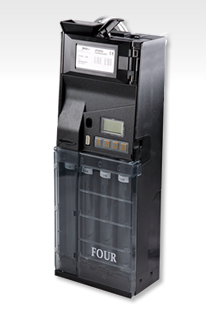 Four JF8900 es el máximo exponente de una visión que hace 10 años permitió a PAYTEC diseñar el monedero de cambio más eficiente del mercado. JF8900 combina una mecánica de clasificación y expulsión insuperable con una potente electrónica que entre otras cosas le permite gestionar el sistema de pago sin efectivo: MIFARE o PAYTEC.
