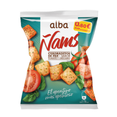 Panes especiales con tomate y orégano. Ingredientes: Harina de TRIGO, aceite de girasol, aceite de oliva, tomate en polvo (2%), sal, levadura, orégano (0,7%). Puede contener: CACAHUETE, SOJA, LECHE, FRUTOS DE CÁSCARA, GRANOS DE SÉSAMO. Conservar en lugar fresco y seco. Envasado en atmósfera protectora