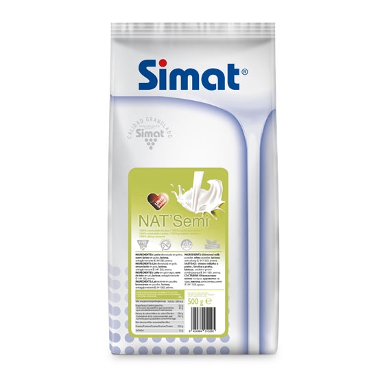REF. 1029 DESCRIPCIÓN DEL PRODUCTO NAT’Semi. LÍNEA SALUD CONTENIDO LÁCTEO 100% NATURAL SIN SACAROSA, SIN GLUTEN Y CON EXTRA CALCIO. PREPARADO LÁCTEO ALTO CONTENIDO LECHE SEMIDESNATADA Leche semidesnatada. Top en salud y valores nutricionales con extra de calcio DOSIS Café con leche: 5,5 g. (80 cc.) Cortado: 3,5 g. (40 cc.) Leche sola: 8-10 g. (100 cc.) PACKAGING Bolsa 500 g. | 20 bolsas/caja | 10 kg./caja Kg./palet: 400 (nacional) | Kg./palet: 480 (internacional).