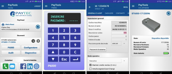 PayCloud es una solución en la nube que le permite tener siempre disponibles los archivos de configuración del sistema de auditoría y pago para analizarlos y, en el caso de los archivos de configuración, modificarlos y volver a cargarlos en los propios sistemas. El ARD puede realizar la lectura y sincronización de archivos con la aplicación PayTools y el dispositivo portátil BT6000. Todas las configuraciones y auditorías se archivan de forma segura, eliminando la posibilidad de errores y siempre garantizando la máxima visibilidad de la situación en el campo, sin tener que conectarse de forma remota a todas las máquinas expendedoras.