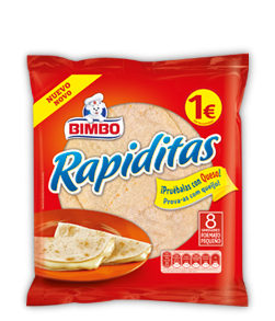 BIMBO Rapiditas es la alternativa perfecta para la cena. Tortillas de trigo que te permitirán preparar una cena rapidísima. Ponles queso, mételo en el microondas para que se funda y verás que buenas están.