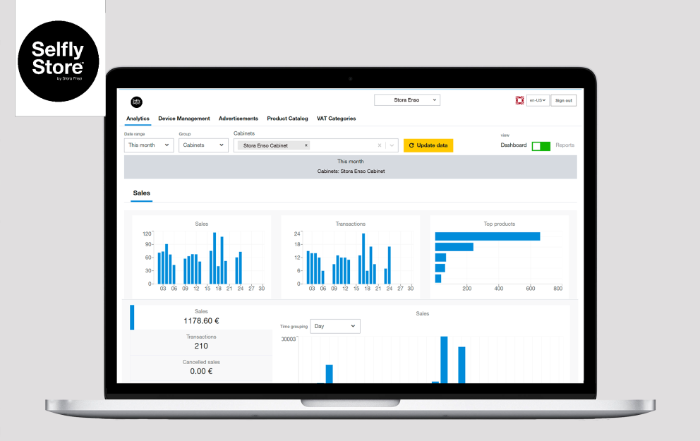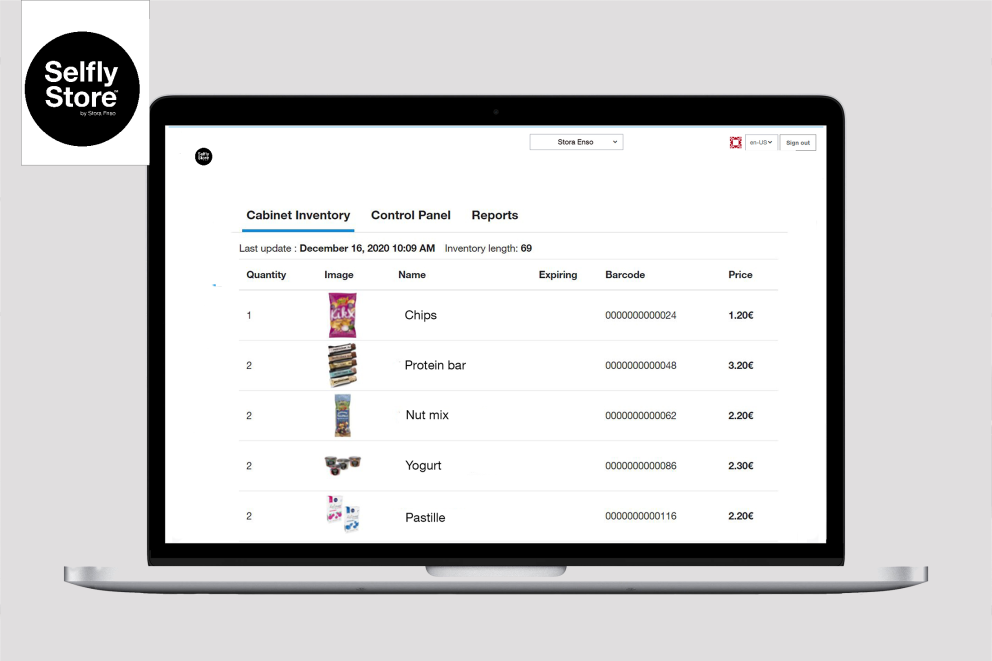 Selfly Cloud es un sistema avanzado en la nube para almacenar, analizar y reportar datos relacionados con la Nevera Inteligente Selfly Store de Stora Enso. A través de Selfly Cloud, los operadores tienen acceso a información en tiempo real sobre el rendimiento, informes de ventas, inventario y reposición. También permite la personalización remota de, por ejemplo, el catálogo de productos, los precios y los anuncios o promociones en pantalla. Video: Visión general de Selfly Cloud: https://youtu.be/2aONQLGh91k