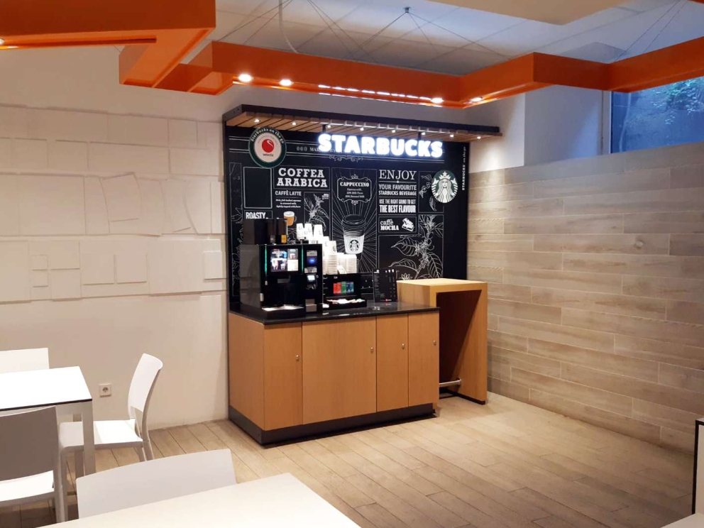 Starbucks on the go es un concepto premium de bebidas que ofrece la auténtica experiencia de Starbucks en entornos de trabajo. Diseñado con la esencia y apariencia de las cafeterías Starbucks, Starbucks on the go ofrece una gama de bebidas de primera calidad utilizando la última tecnología suiza de café espresso y un formato modular único para complementar esta variedad en oficinas y entornos públicos. Con Starbucks on the go, tus empleados y clientes disfrutarán de una nueva forma de tomar café dondequiera que estén.
