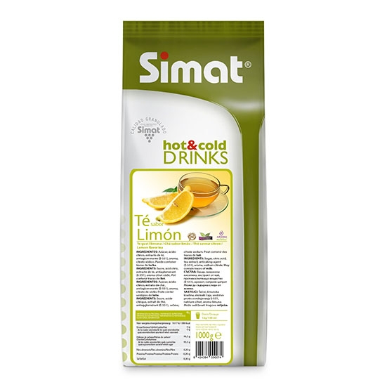 REF. 0007 DESCRIPCIÓN DEL PRODUCTO El preparado a base de té y limón de Simat es una bebida pensada para los amantes de las buenas infusiones, aromáticas de sabor fresco. La dosificación del azúcar está en su justa medida. El aroma del limón no enmascara el gran sabor del té. DOSIS 9-12 g./100 cc de agua. PACKAGING Ud: 1 kg. | Ud./caja: 10 | Kg./caja: 10 | Kg./Palet: 450 (nacional) – 630 (internacional).